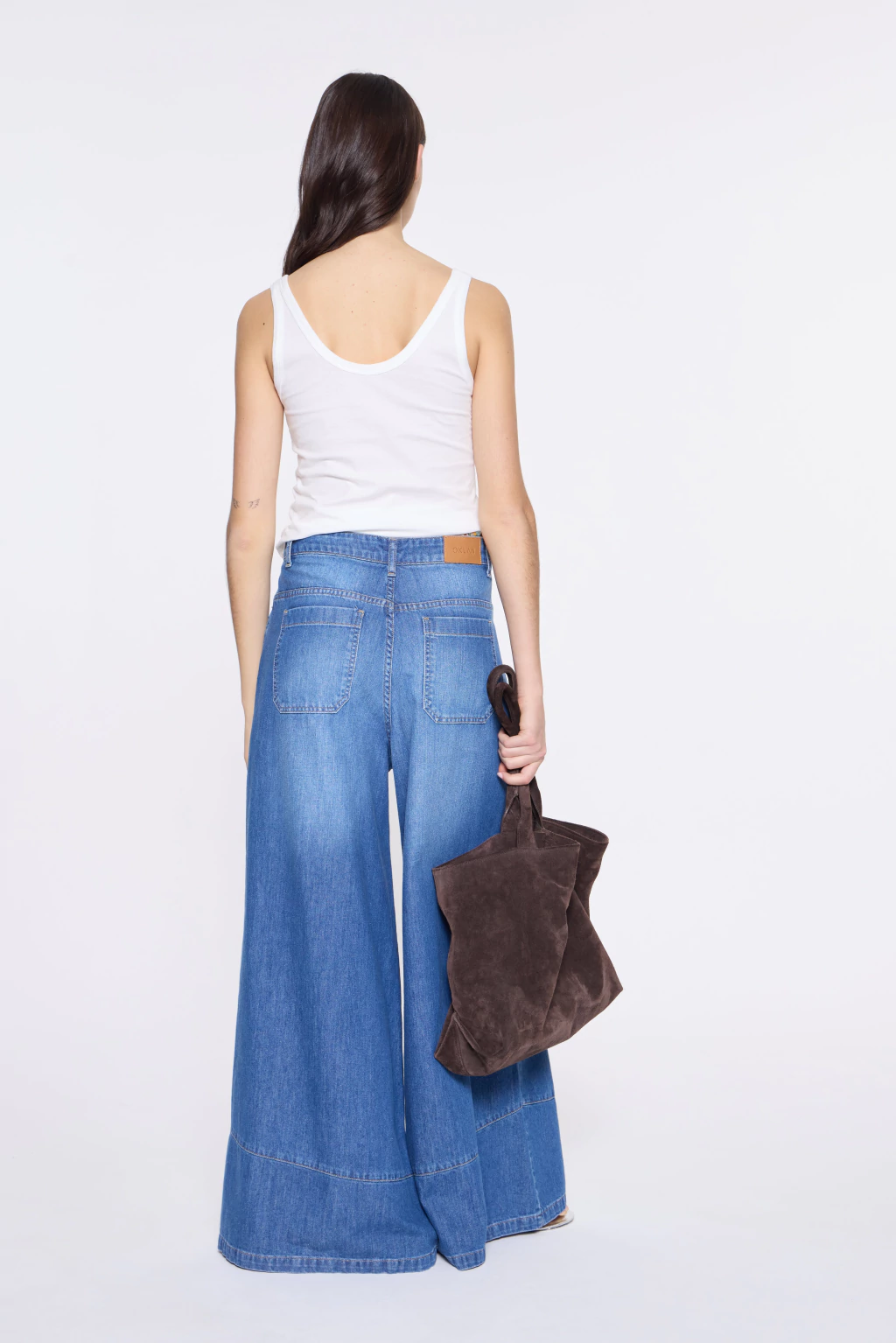 Jean wide leg de tiro medio bajo, confeccionado en denim 100% algodón.