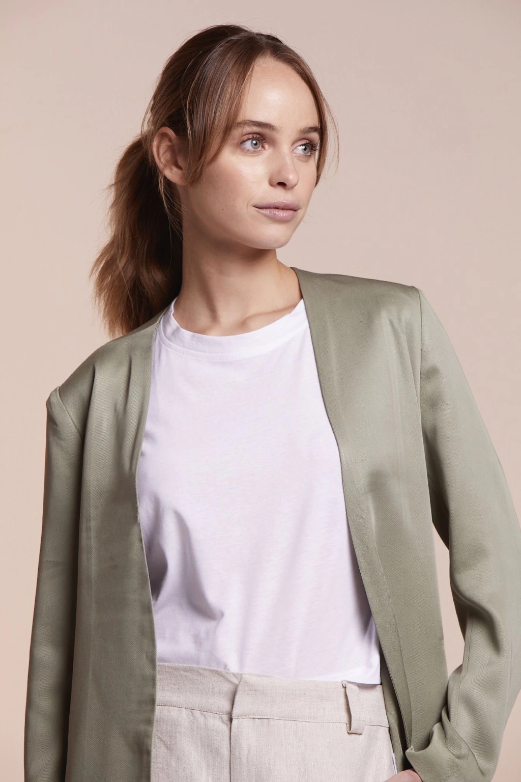 Blazer sin solapa largo hasta la rodilla de tencel 100% con lazo bordado y bolsillos laterales. Hace conjunto con el Pantalón Ylang y el Short Tinto. Un mil para complementar tu look!! Viene en Negro, Off white, Tostado y Verde militar.