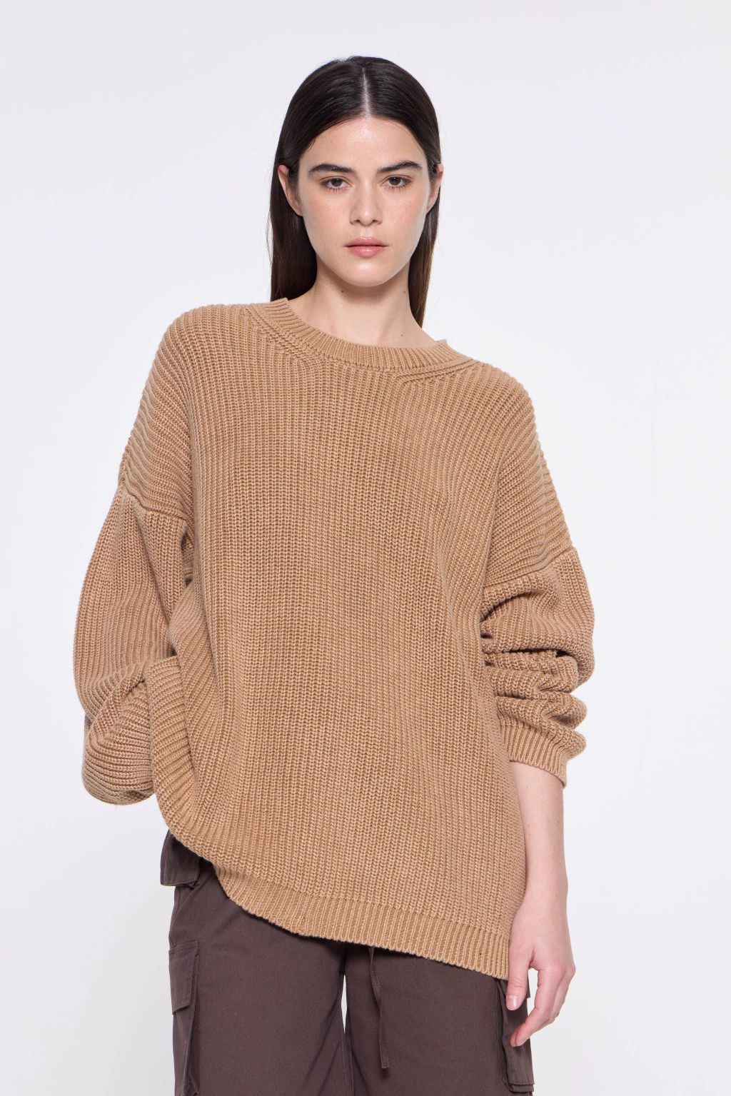 Sweater de cuello redondo, confeccionado en punto perlé.