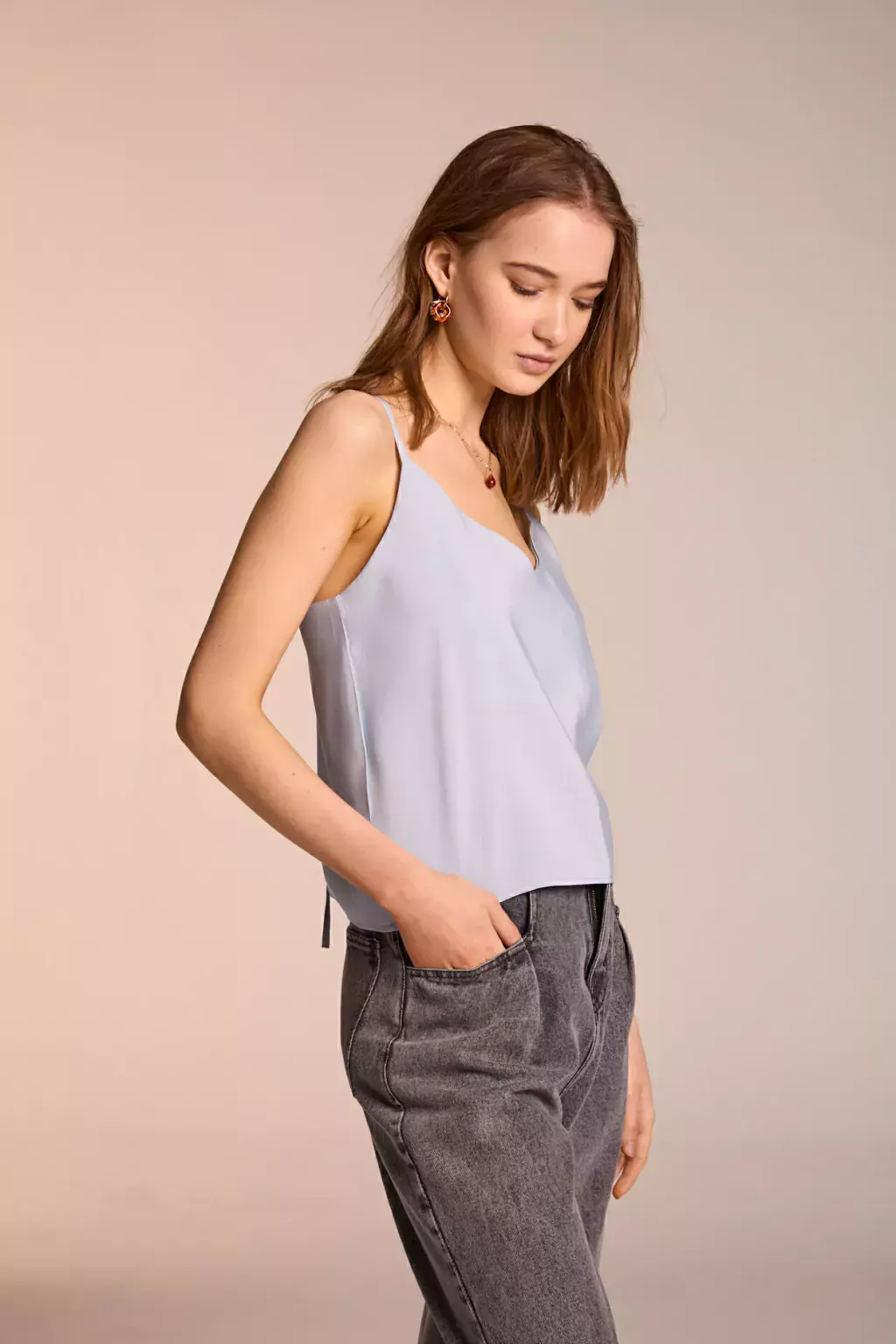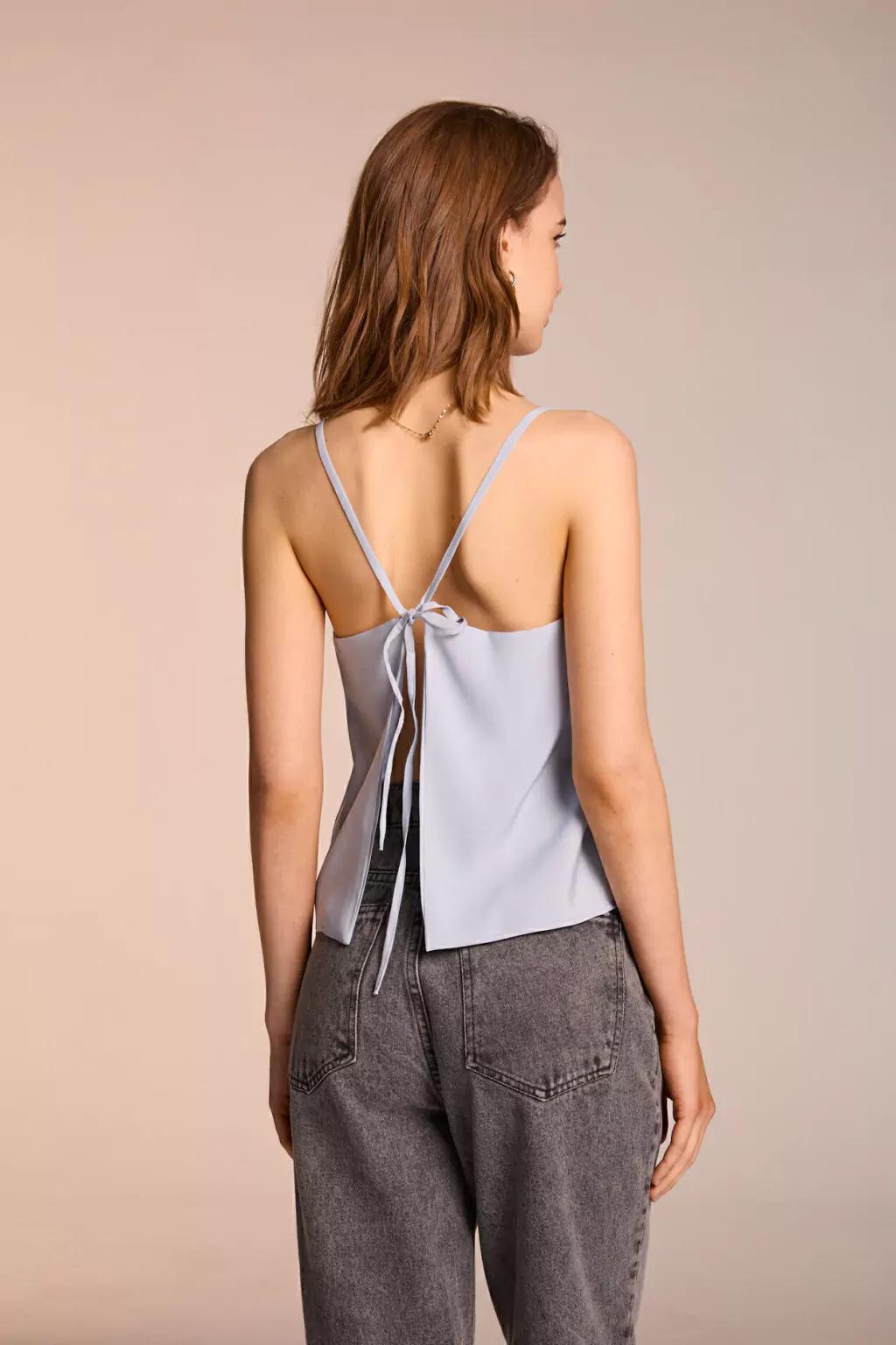 Top bretelero en cupro con la espalda abierta con presillas para ajustar. Súper fresco para usar esta temporada!! Úsalo en conjunto con el Pantalón Lichi o el Short Romero. Viene en Off White y Negro.